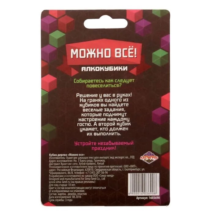 Купить кубик "можно все", алкокубики для принятия решений от 60 руб. с доставкой до пункта выдачи в Холмске. Интернет магазин ДекаМаркет. Оплата при получении.